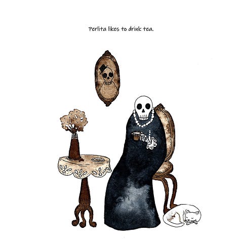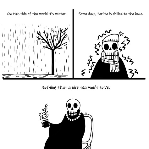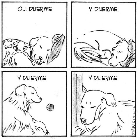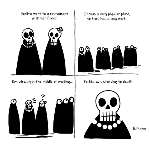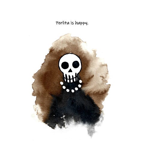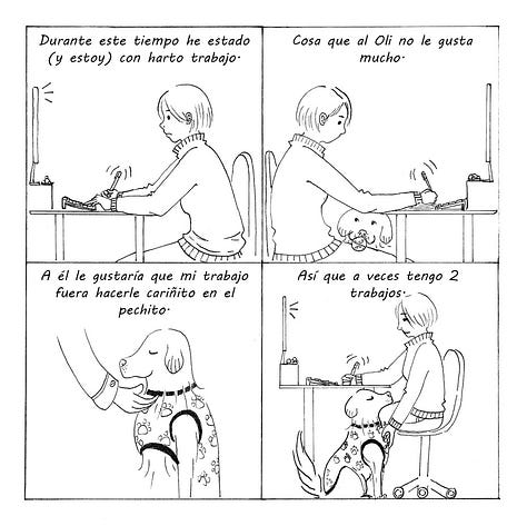 Although I've worked professionally as a comic artist and, separately, as a writer, the closest thing I've done to something that is completely my own creation are short comic strips about my life and that of my dog, Oliver, and an attempt at creating something with Perlita, a happy skeleton (still available in Tapas). With them I allowed myself to experiment with techniques, formats and styles.